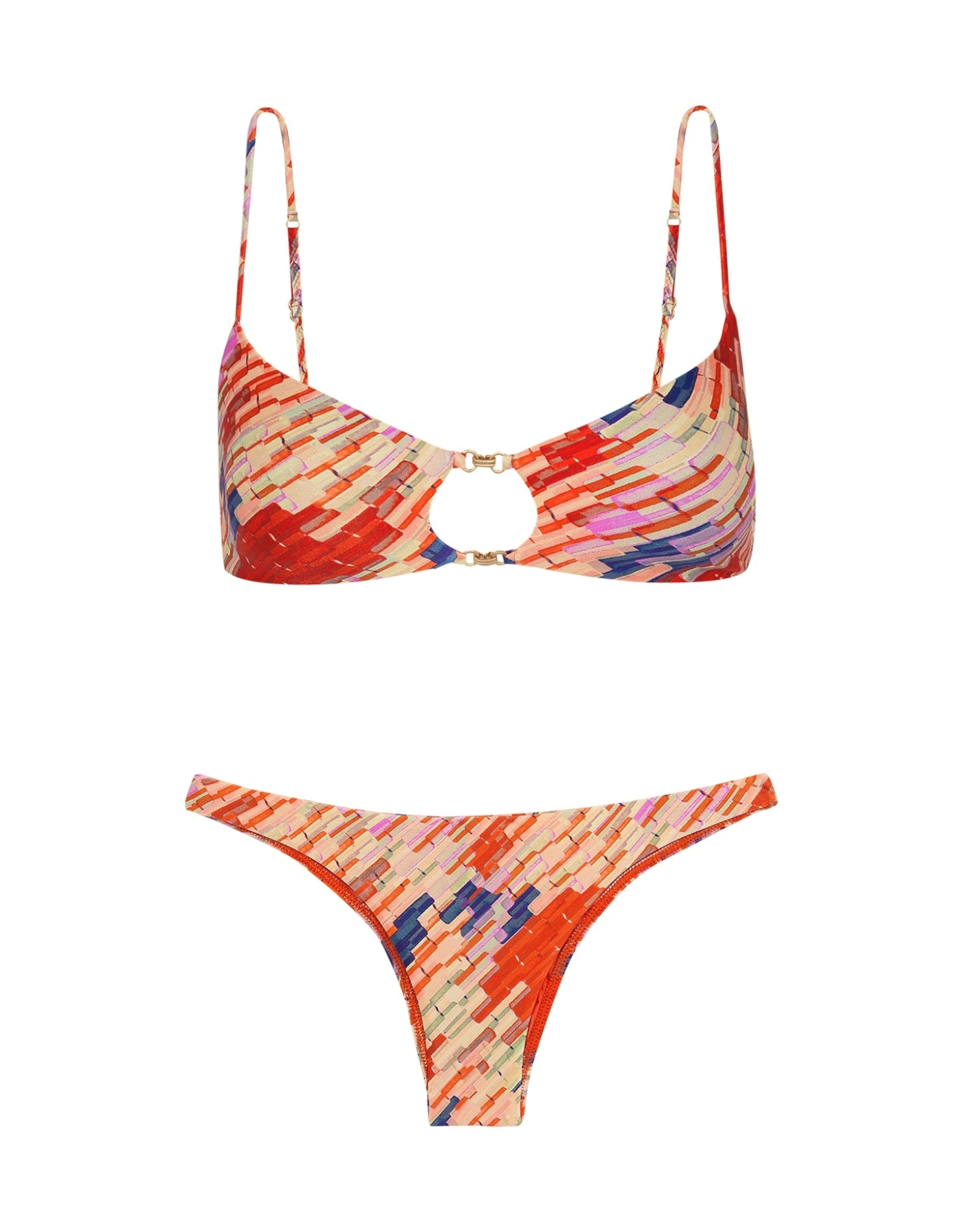 Relax on the sandy beaches of your tropical adventure in ravishing style sporting the dazzling Allie Top. This striking bralette is gracefully embellished with 24k gold-plated rings linked together to produce a delicate chain pattern and is shaped in our luxurious Brazilian fabric, giving you a seamless fit for effortless glamour.
