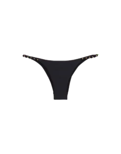 Classic bikini bottom with hand-crafted fabric beading and gold accents.