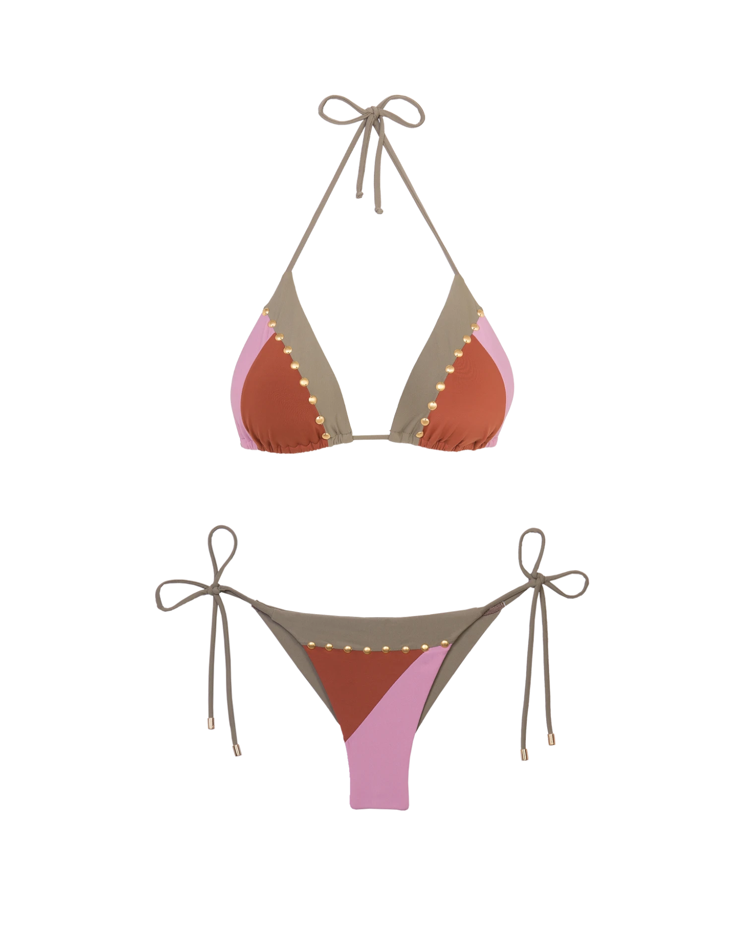 This traditional tie side bottom with elevated gold detailing and elastic cords with a curve hugging fit giving you an alluring look.