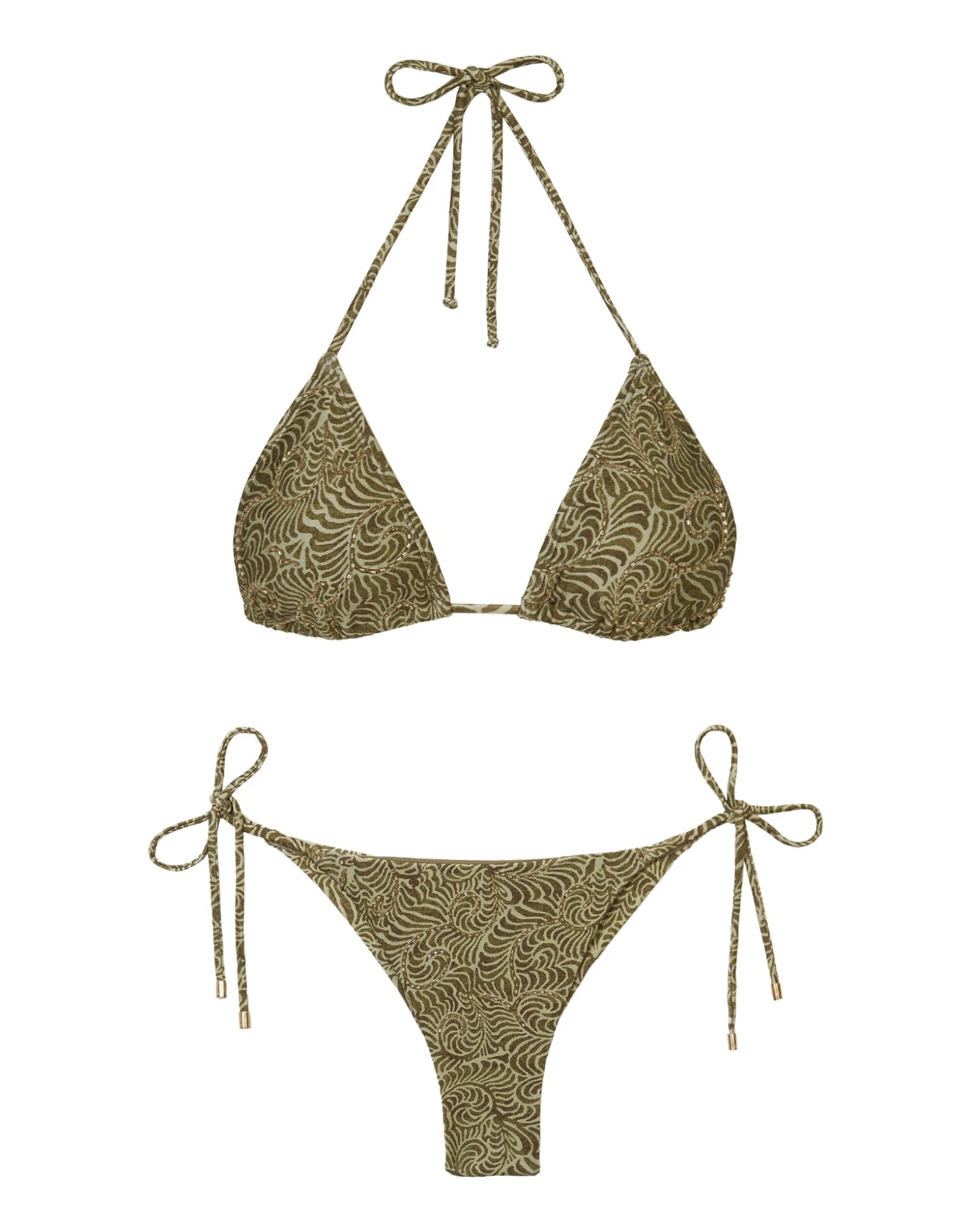 Add some glam to your swimwear in this classic tri top with subtle artisanal embroidery that is sure to make you shine on your next vacation.