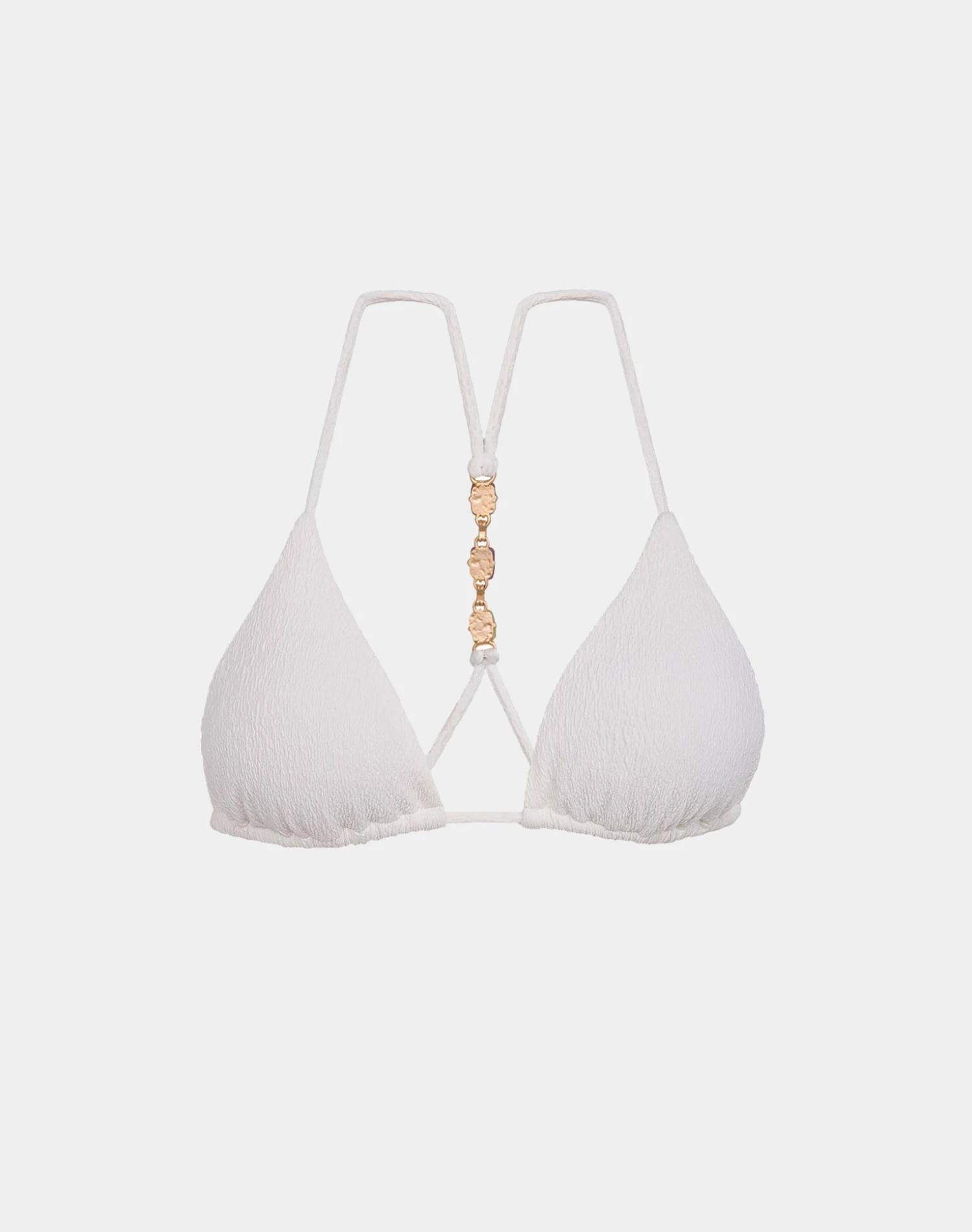 Embrace an oasis of style in the Martha T Back – a classic triangle top embellished with colorful stone-like resin details that contrast perfectly with gold ring links that make this silhouette bold enough for your sun-seeking thrills without compromising style or class.