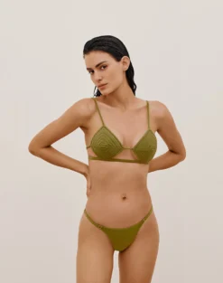 Soak up the sun in an iconic piece that will set you apart, this bold modern cut top is styled in our buttery Brasilian lycra with stand-out knot detailing trims, sultry cut-outs and a criss-cross back that will elevate your swim attire.