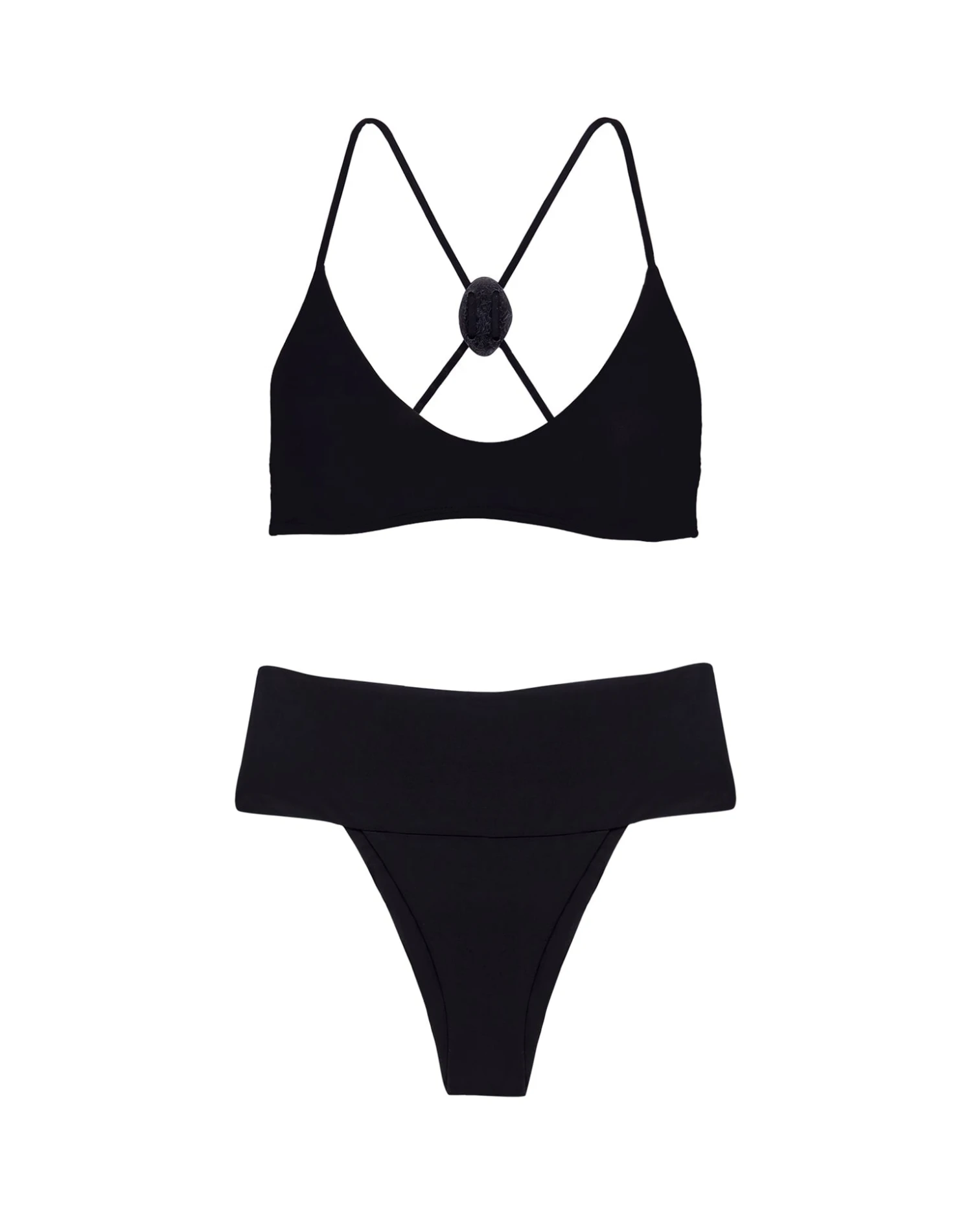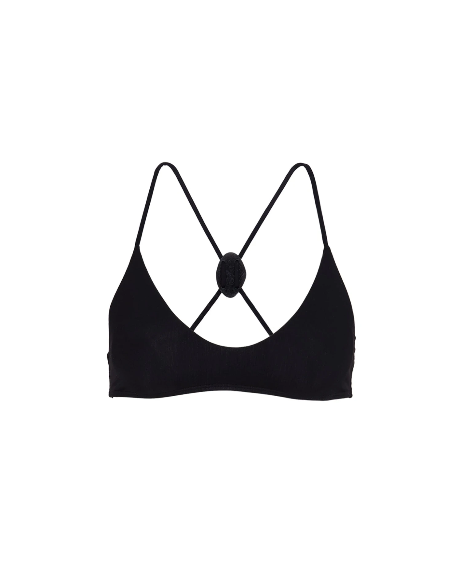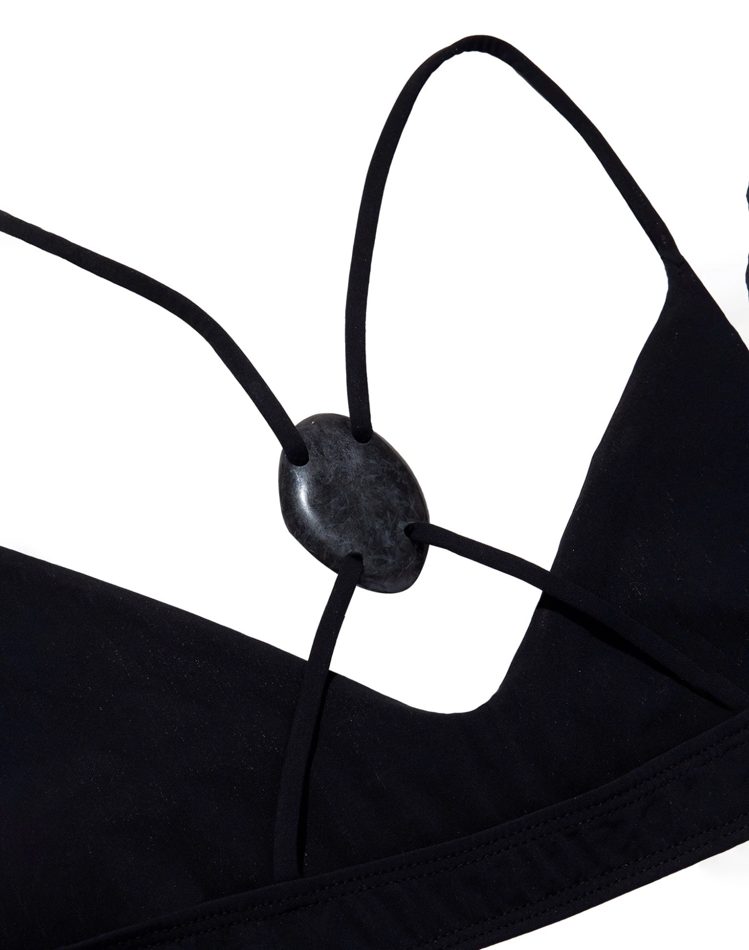 Boost your swimwear attire in the sporty, versatile, and up for anything Kim Li Top. Designed with water lovers in mind, this athletic top is shaped in our luscious Brazilian lycra, featuring a scoop neckline, and embellished with an oversized resin charm all tied together in a crisscross back that will be your ally on all your aquatic escapades.