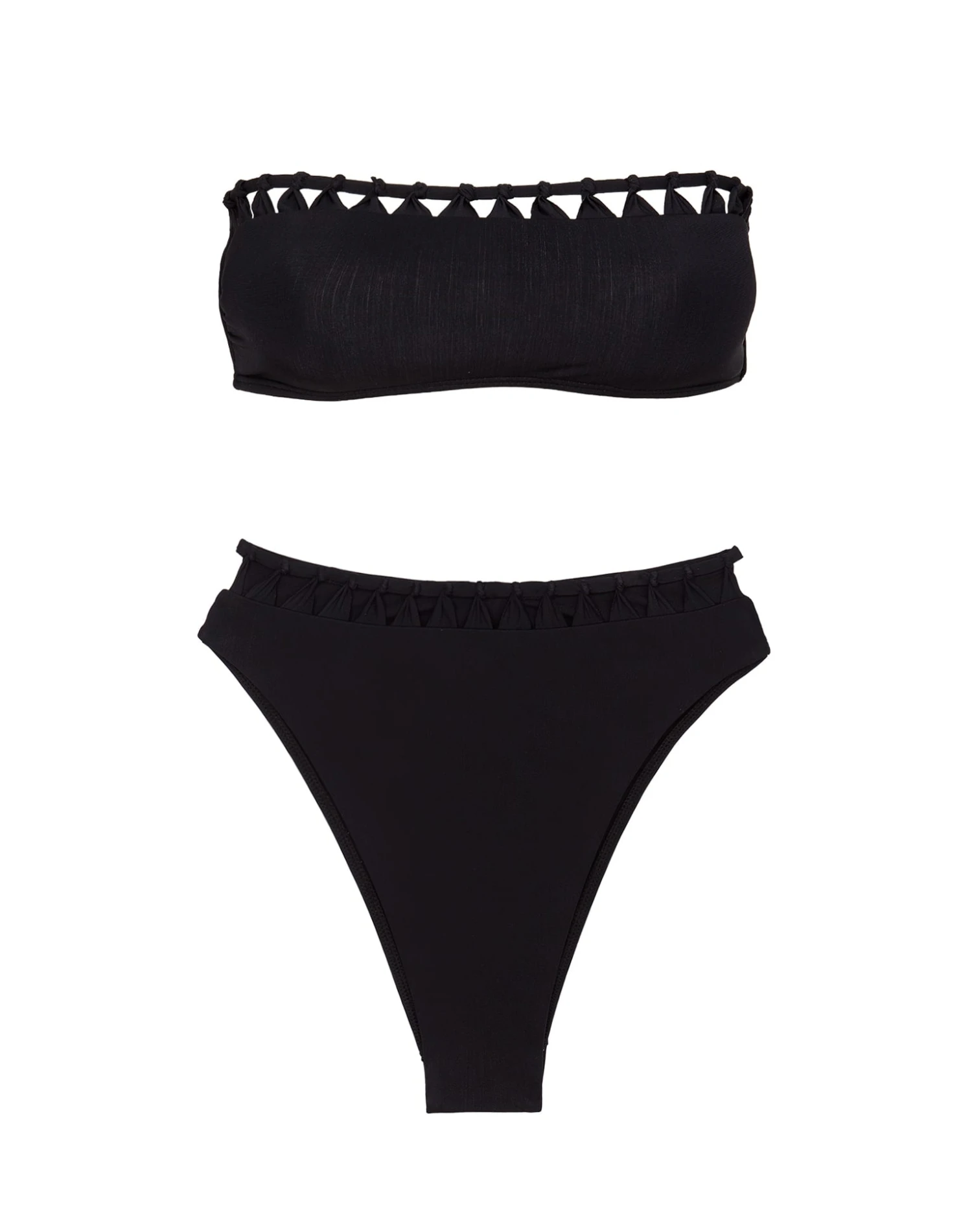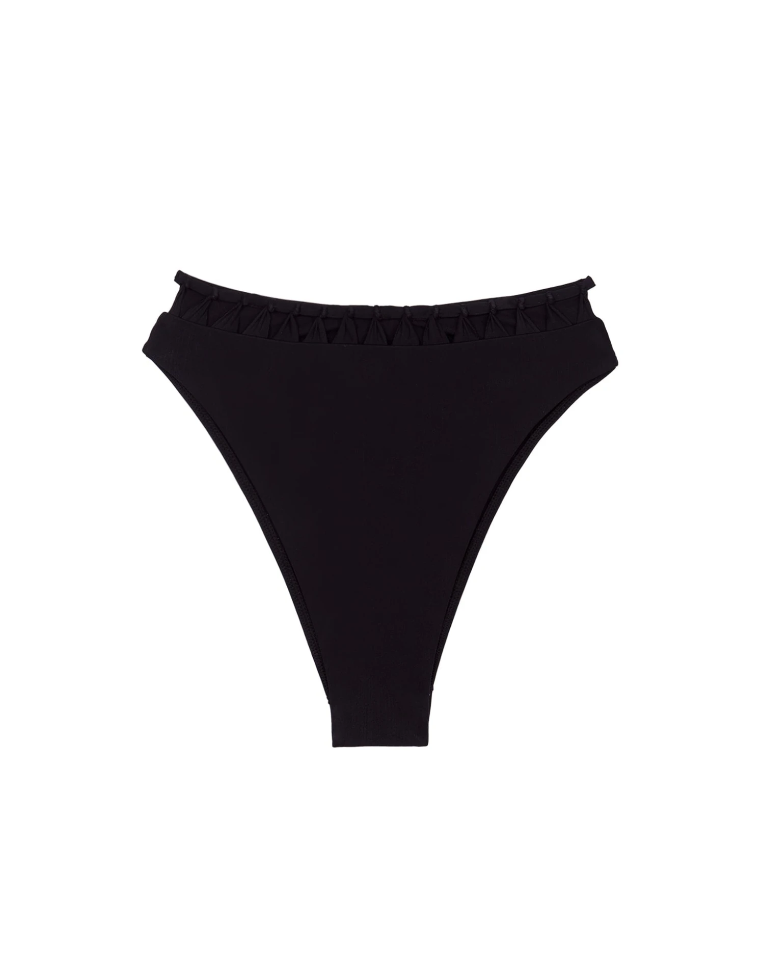 Bring on the sun in this figure-flattering high-waisted bottom that will have you catching waves in style—crafted in our exclusive Brasilian lycra with geometric cut-outs and a macramé trim detail that take this bottom to new heights giving you a sophisticated yet trendy look.