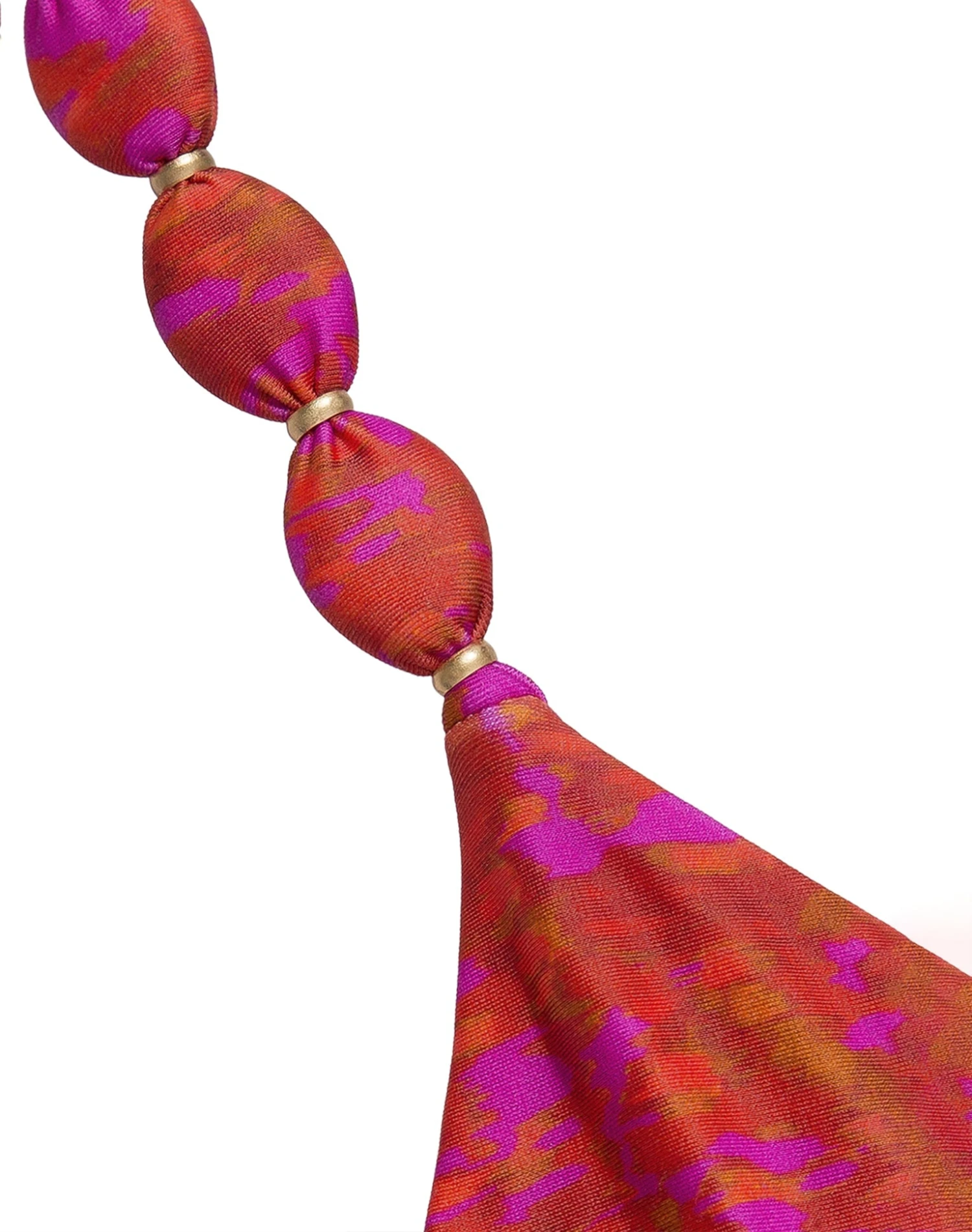 Take over the beaches in a stunning fashion sense with the Lizzy Li Top, designed to keep you comfortable without compromising style throughout all your aquatic adventures. Fashioned in our famously acclaimed Brazilian lycra and artisanal enhanced trims composed of self-covered oval appliqués and complemented with 24k gold charms which introduce a feminine yet flirty allure to this phenomenal design.